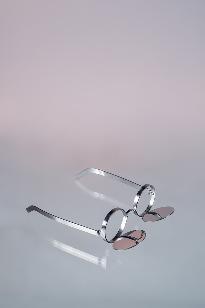 The concept behind the mirrored glasses series is idea of directing the perspective of the user. While referring to the documenta14 project ‚When we were exhaling images‘ in collaboration with artist Hiwa K, the idea of changing perspective was applied to four different glasses. Illusions are created through the positioning of mirrored surfaces in varying angles.
