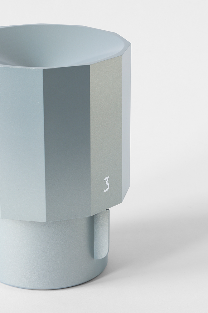 Kello distances itself from the usual appearance of a clock. A facetted body replaces the common clock-face and revolves around its own axis in twelve hours. The concept deliberatley abstains from a meticulous time indication and rather attends upon the intuitive reading of time by reference to the position of the current hour to a fixated hand. The conception follows the one-hand principle of initial timepieces, as well as the Cercle Tournant clocks from the 17th to 19th century with their horizontally arranged number plates.
