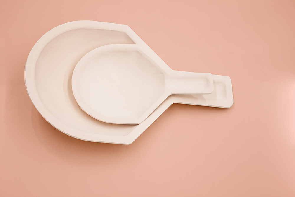 Folifora is a newly developed, democratic manufacturing process for the production of ceramic containers, facilitating without electricity and specific devices. The technique allows the reproduction of handmade and notably thin-walled and light shards without the need for elaborate mould construction: rolled out clay is placed onto a hole template and with a scoop shaped into a container. Folifora provides ergonomic working conditions in which one can work noise-free, sensible and without much physical strength, also strengthening emotional aspects such as the feeling of participation and codetermination.